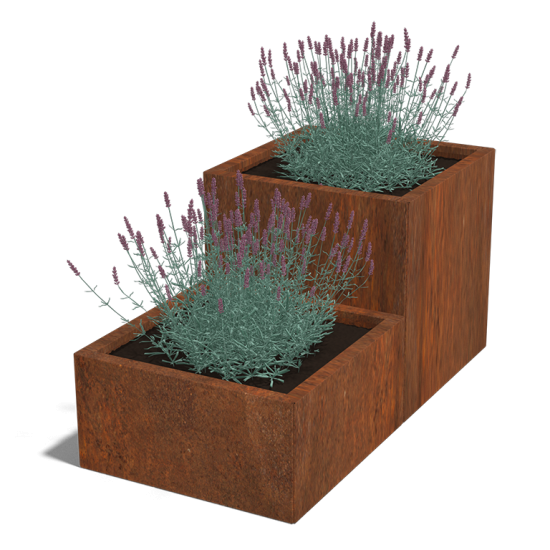 De trapmodel plantenbakken zijn ideaal wanneer je bijvoorbeeld hoogte verschil in je tuin wilt aanbrengen. De trapmodel is verkrijgbaar in een 2-trede en 3-trede. De plantenbakken zijn modulair opgebouwd en zijn door de meegeleverde montagetekeningen eenvoudig te monteren. Deze plantenbakken worden gemaakt uit Corten-A plaatmateriaal. Corten-A is de nummer één in zijn soort en heeft als eigenschap dat dit materiaal snel een mooie roestkleur krijgt, hierdoor zijn zure roestversnellers overbodig. Alle onderdelen worden ongeroest geleverd. Wanneer je deze blootstelt aan de buitenlucht krijgen deze binnen enkele weken al een mooie bruin/oranje roestkleur.